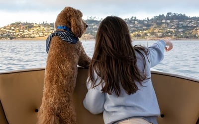 Explore Sausalito by electric boat with your pup. Choose a 2, 3, or 4 hour rental with pet-friendly perks and Fi gear.