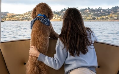 Cruise with your pup on an electric boat and get a Fi collar and extras