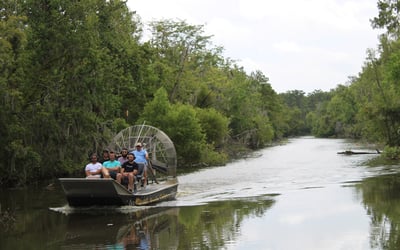 Glide through Louisiana swamps on a small airboat and see native wildlife. Guides take you to places other tours don't go on a 1.5-hour ride.
