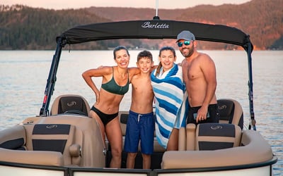 Explore the lake with family and friends aboard a performance tritoon. Enjoy spacious seating and a power bimini on a multi-day rental.