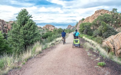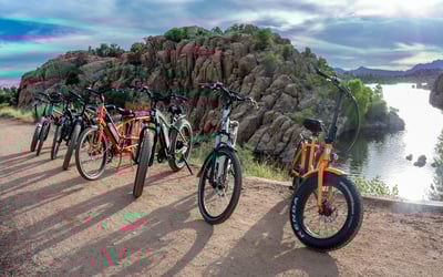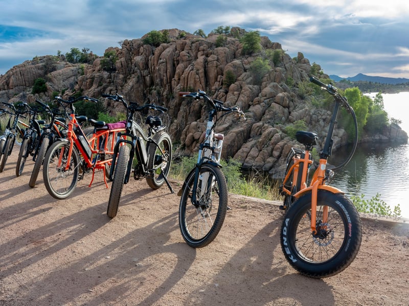 Ride a self-guided e-bike route along Watson Lake on the Peavine and Iron King rail-trails. Enjoy easy, scenic paths with views of the Granite Dells and historic Point of Rocks.
