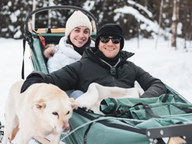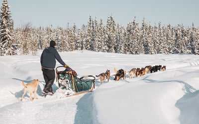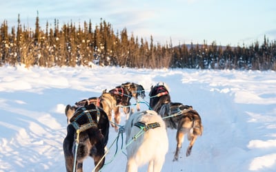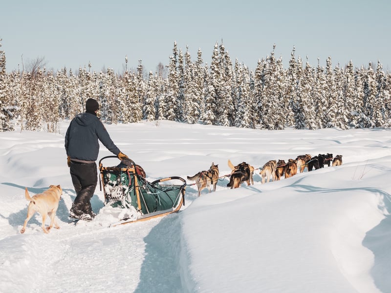 Glide through a pristine winter landscape behind an eager team of Alaskan huskies. Follow a section of the historic Yukon Quest trail past snow-capped spruce and frozen lakes.