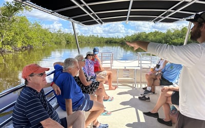 Experience a private 2-hour boat tour through the 10,000 Islands, tailored for your group. Cruise scenic waterways, enjoy music, and explore hidden islands with flexible options for up to 17 guests.