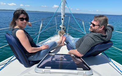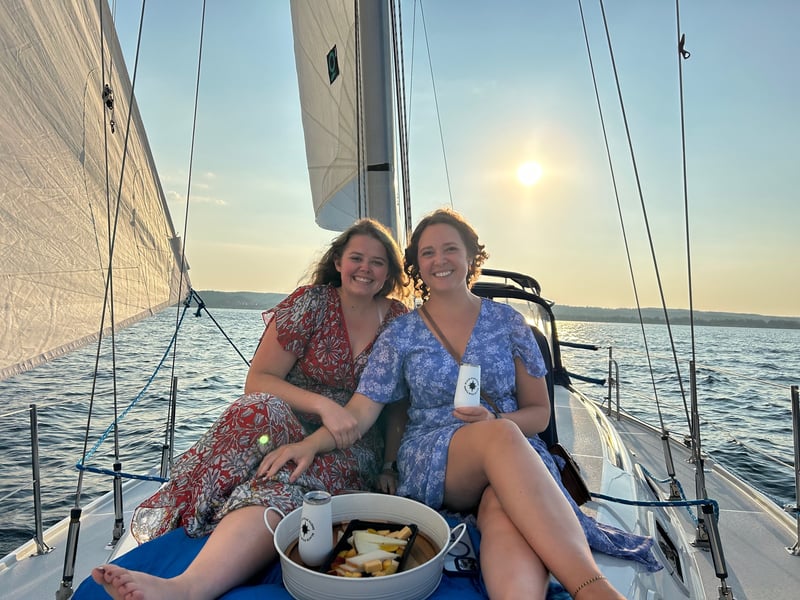 Captain Tom and his crew (including first mates Joey, Jess, and Teaghan) have created something special on Grand Traverse Bay. Guests consistently describe their sailing experiences as the highlight of their Traverse City visits, praising the immaculate condition of the boat and the crew's ability to make everyone feel like they're sailing with friends rather than strangers. The professionalism shines through in excellent communication before trips and attention to comfort throughout, while the laid-back, conversational vibe makes the whole experience genuinely relaxing. What makes these charters stand out is the thoughtful details and flexibility. Captain Tom is known for sharing local knowledge and sailing expertise without overwhelming guests, answering endless questions with patience, and tailoring each trip to what people want, whether that's swimming stops at Power Island, peaceful sunset cruises, or even serving as the backdrop for a proposal. The boat comes equipped with extras like SUPs, a grill, Bluetooth speaker, and coolers that elevate the experience beyond a basic sail. People repeatedly mention this as a bucket-list experience they didn't know they needed.
