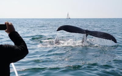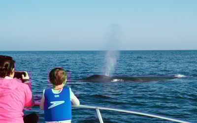 Cruise from Newport Beach aboard a 26' stabilized catamaran for an intimate encounter with whales and dolphins. Enjoy a private charter limited to six guests with shock-absorbing seats that minimize seasickness.