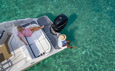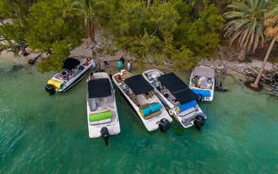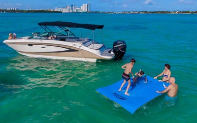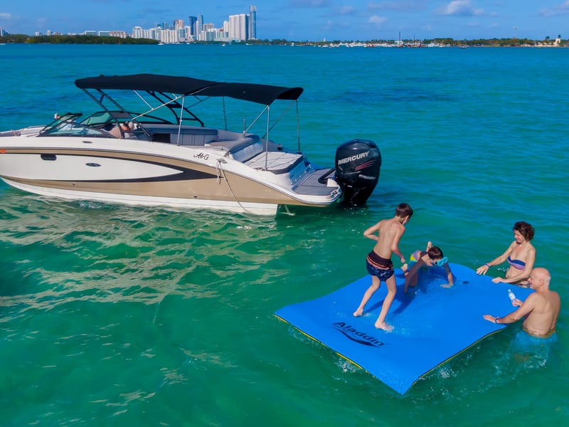 Explore Biscayne Bay with a professional captain, Bluetooth speakers, and a floating mat