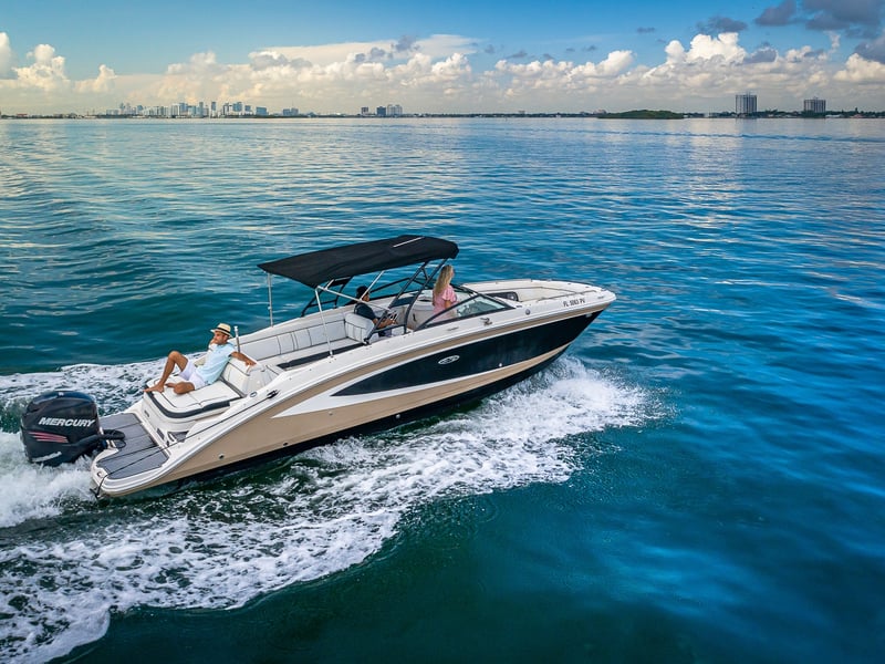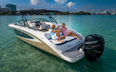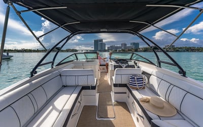 Explore Miami's Biscayne Bay on a comfortable 29‑ft sport boat. Relax while a professional captain handles the helm as you play your own music and enjoy time on the water.