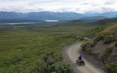 Ride up Balinger Pass, home of the last great gold rush in Alaska (1907). See four mountain ranges, then visit a real gold claim to learn how to use a sluice box and try finding gold.