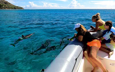 Captain Chris and his crew have created something pretty special here. This isn't your typical crowded tour boat experience. These are private charters on a speedboat, which means you get to customize your day and zip around to spots the bigger vessels can't access. The vibe is relaxed and fun, with good music playing while you cruise the coastline. People consistently rave about how knowledgeable and personable Chris is, and his crew members (Sara, Sarah, and Josh get shoutouts) seem equally great at making guests feel comfortable and entertained. The marine life sightings are genuinely impressive. Multiple groups encountered spinner dolphins, humpback whales, sea turtles, and tons of fish while snorkeling. Chris apparently has a knack for finding wildlife and will happily follow pods of dolphins or whales for extended periods. One reviewer even mentioned the crew stopping to pick up trash from the ocean, which is a nice touch. There's also a unique tiki sunset cruise option that takes you to La Mariana, a vintage tiki bar only accessible by boat, which sounds like an absolute blast based on the glowing descriptions. One honest three-star review does offer a different perspective worth noting. That family felt the captain was distant and hard to connect with, and they were taken to a choppy snorkeling spot off Waikiki Beach despite rough conditions, leading to seasickness and poor visibility. They felt it wasn't worth the premium price tag. However, this seems to be the exception. The overwhelming majority describe warm, personalized service and a willingness to adapt to what guests want to see, whether that's dolphins, whales, or just cruising with good vibes.