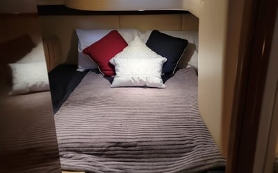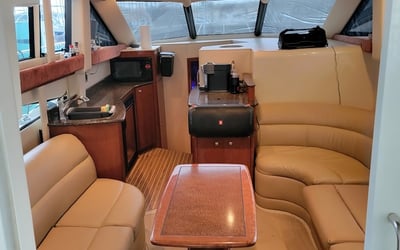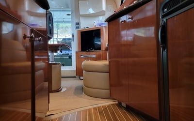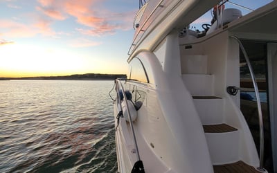 Cruise Lake Travis from Paradise Cove Marina on a private 36' Meridian yacht. Spread out across two levels with indoor lounge, outdoor seating, smart TVs, a Bluetooth sound system, and sunning mats.