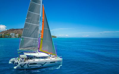 Set sail on Island Jewel, a 2022 Excess 12, 40β sailing catamaran based at Kewalo Basin Harbor in Honolulu. Customize your private charter duration and itinerary as you relax in spacious indoor and outdoor lounges.