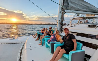 Must be 18+ to book; arrive 15 minutes early. No red wine or smoking onboard; vapes are allowed. Bring towels if you plan to swim; gratuity not included.