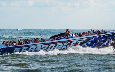 Climb aboard the Sea Rocket speedboat for a private 60-minute cruise along Ocean City's Atlantic coastline. Customize your outing and enjoy onboard music plus drinks for purchase from the fully licensed bar.