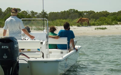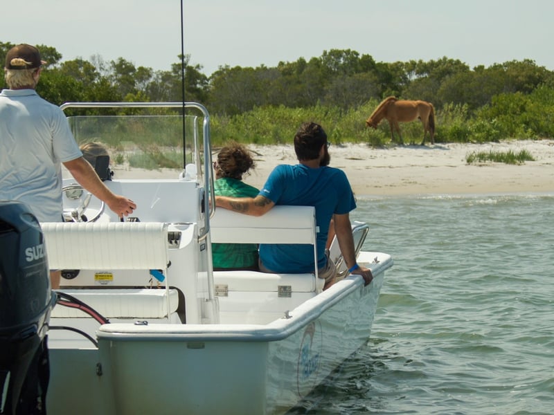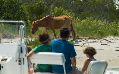 Enjoy a personalized 1-hour cruise through Assateague's back bays to spot wild horses with up to five friends