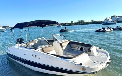 Cruise Miami Bay aboard a private Bayliner 190 for a relaxed outing. Take in skyline views, stop at sandbars, and play your music as you explore