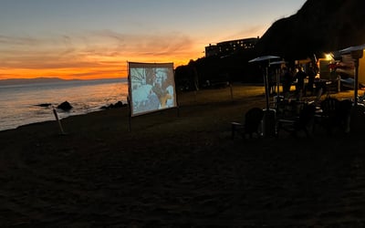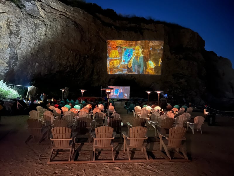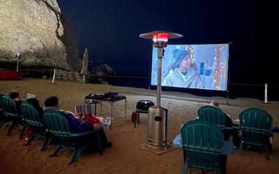 Enjoy an exclusive seaside movie screening with chairs, blankets, and refreshments