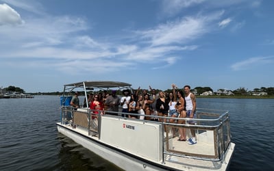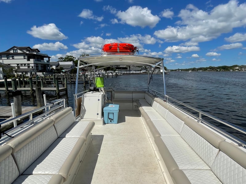 Host your celebration aboard a private Beachcat party boat on Barnegat Bay. Cruise on a USCG inspected vessel with a master captain, mate, comfortable seating, bathroom, and sound system.