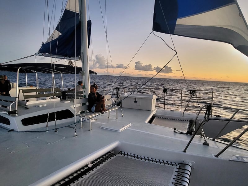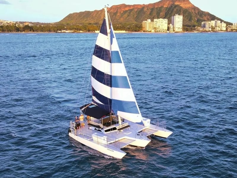 The crew here consistently gets praise for being friendly, fun, and safety-conscious, with guests calling out names like Captain Jack, Shaun, Johnny, and Lauren for making the trips memorable. People love the boat itself, describing it as beautiful and well-maintained, and the vibe is reliably chill with good music playing throughout. Most trips successfully spot sea turtles during snorkeling, and some lucky groups even catch dolphins swimming alongside the boat. The snorkeling experience seems solid overall, with the crew helping guests feel comfortable with equipment and finding good spots to see turtles and fish. One reviewer noted a more crowded snorkeling scene with several boats around one turtle and murky water, and felt the sailing portion fell short of expectations with only one sail deployed instead of the full setup. That said, this appears to be an isolated experience among otherwise glowing reviews. The sunset trips get special mentions for being peaceful and beautiful, making them a great way to wind down an evening in Hawaii.