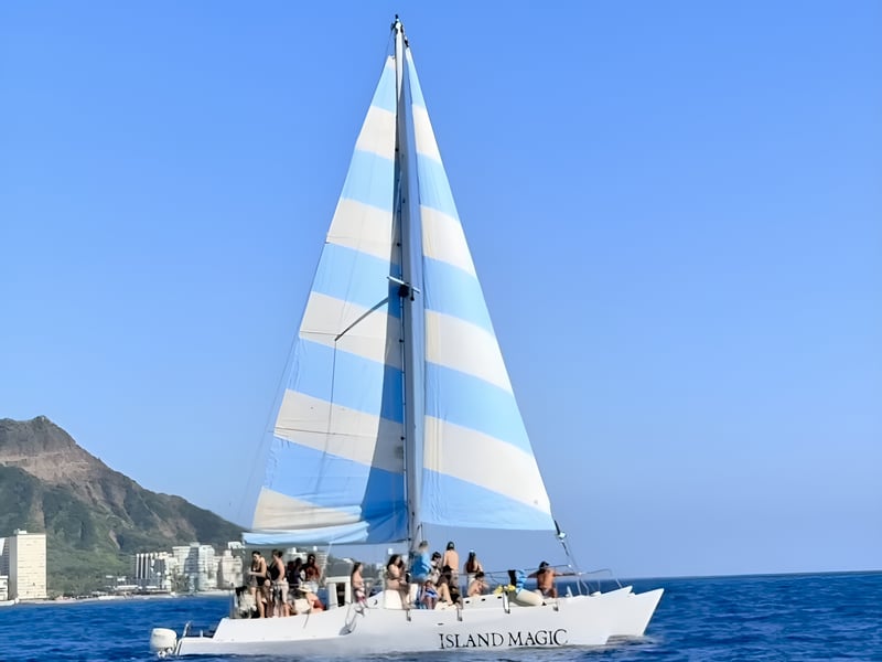 Aloha Sails delivers exactly what travelers want from a Waikiki sailing experience: a friendly crew that genuinely cares, reasonable prices, and memorable moments on the water. The captain and staff earn consistent praise for their warmth and attentiveness, with names like DJ and Emma popping up repeatedly as standouts. Families love how welcoming they are with kids of all ages, while groups of friends rave about the high-energy vibe, music, and dancing on sunset cruises. The BYOB policy lets you bring your own drinks and snacks, and they provide coolers with ice. The experiences themselves hit all the highlights. Sunset sails often align with Friday fireworks from Hilton Village, creating a magical backdrop from the water. Snorkel trips offer ample time to swim with sea turtles and tropical fish in calm, clear spots. Several reviewers mention this was the standout activity of their entire Hawaii vacation. The intimate catamaran keeps groups small and the atmosphere relaxed. One helpful tip from multiple guests: if you're prone to motion sickness, sit up front where you can watch the horizon and consider taking Dramamine beforehand.