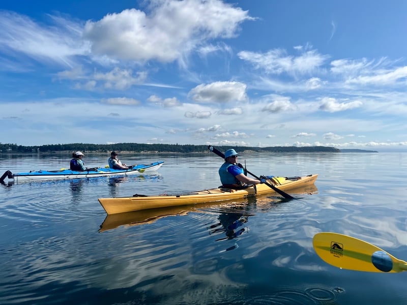Set your own pace exploring Penn Cove by tandem kayak with a local guide