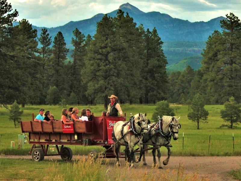 Buck and his team have created something really special here in Pagosa Springs. Guests consistently rave about the warm hospitality and the obvious care given to their beautiful, well-behaved horses. The dinner carriage rides seem to be the standout option, with reviewers mentioning delicious BBQ, live music, and s'mores around the campfire that add to the old West atmosphere. Several guides get mentioned by name (Brett, Naomi, Jessica, Nick) for being both knowledgeable and entertaining, complete with dad jokes that had families laughing. The experience works wonderfully for all ages, with groups ranging from toddlers to adults having memorable outings together. The scenic San Juan Mountain backdrop earns consistent praise, and many appreciate how the slower pace lets them disconnect and soak it all in. Even when weather doesn't cooperate with snow for sleigh rides, guests still report having fantastic times on carriage rides instead. The flexibility and last-minute availability also stand out, with Buck accommodating same-day reservations without issue.