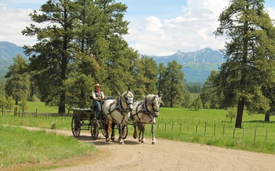 Experience mountain, meadow, forest and lake vistas on a private horse-drawn ride for your group
