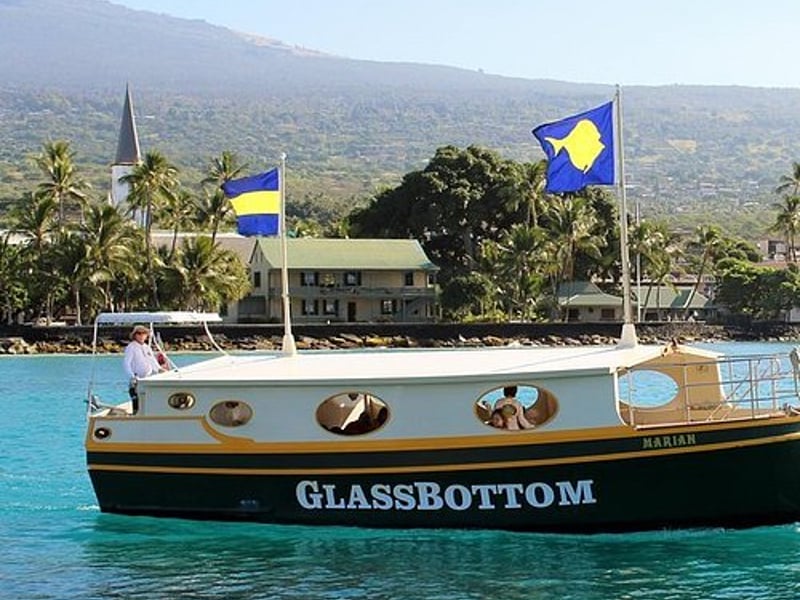 Charter a glass-bottom boat for a private 50-minute cruise along Kailua-Kona's vibrant coastline. An onboard naturalist shares insights into the marine life viewed through the boat's windows.