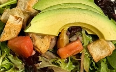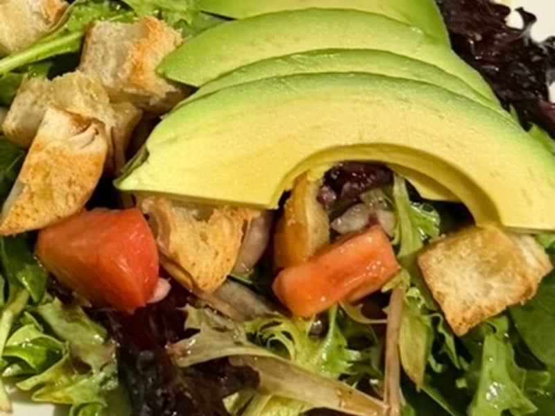 • Garden greens with avocado, tomato & balsamic vinaigrette