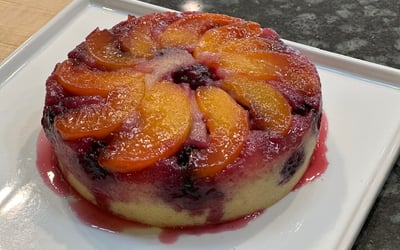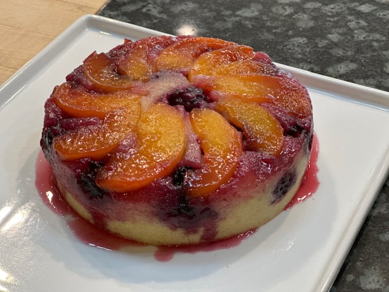 • Spring fruit upside-down cake with vanilla ice cream