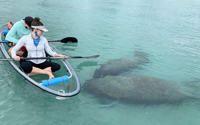 Glide across Jupiter's blue-green waterways in a transparent tandem kayak on this private guided tour. Enjoy unobstructed views of marine life and sandbars as you paddle with your group.