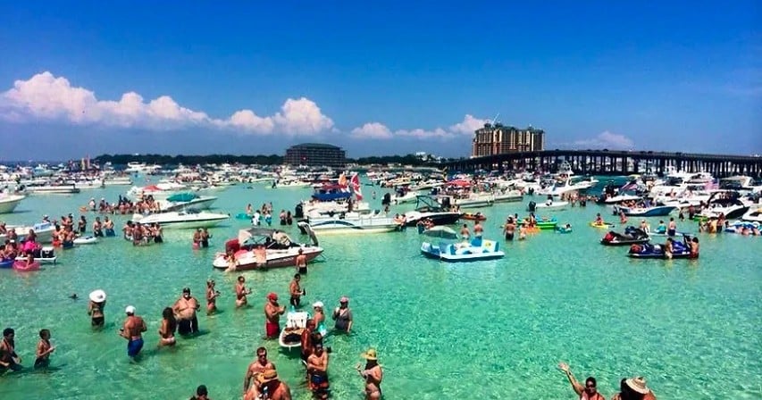 Relax on a private USCG-certified, captained pontoon charter to Crab Island. Spot dolphins, swim, and enjoy all-inclusive gear.