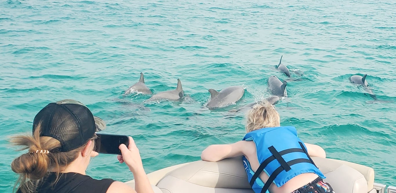 Enjoy a private, all-inclusive pontoon cruise with dolphin spotting and Crab Island time for up to 6.