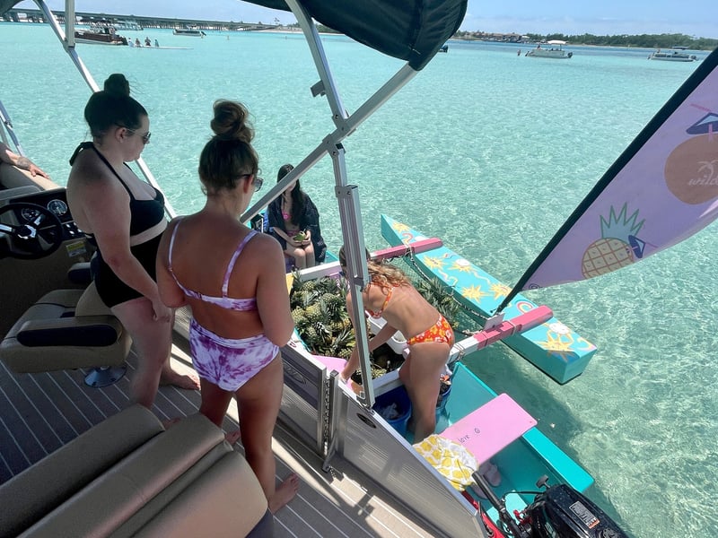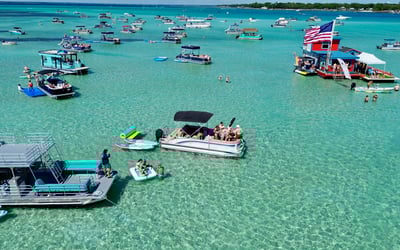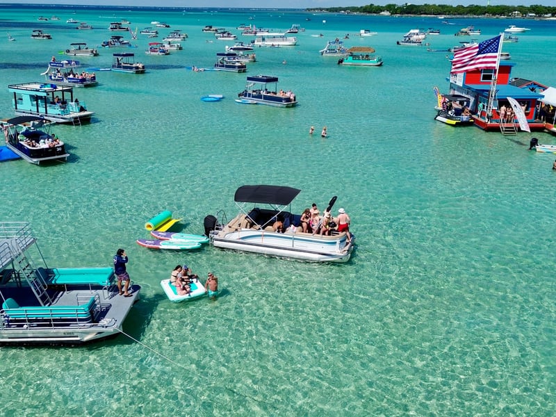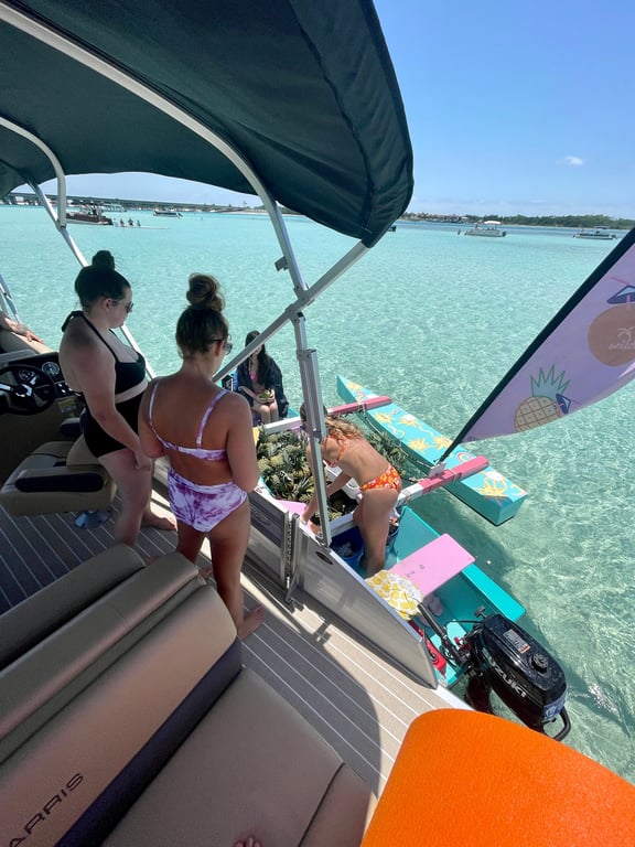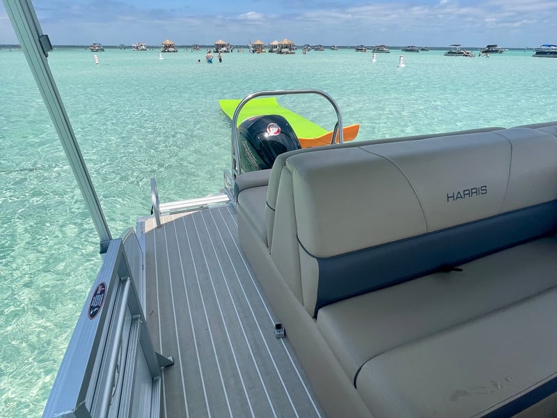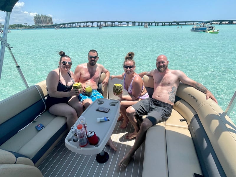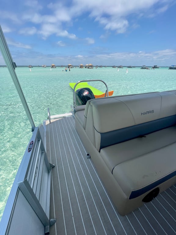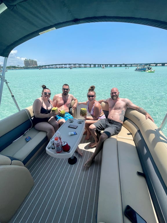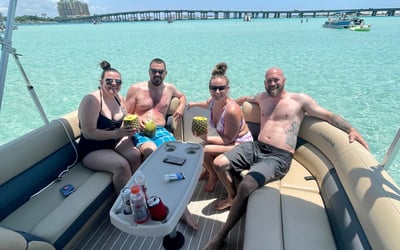 Enjoy the Destin waters aboard your private single-deck pontoon as your captain navigates to Crab Island for a relaxed anchor-up. Play with included water toys and soak up Emerald Coast views with family and friends.