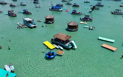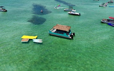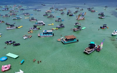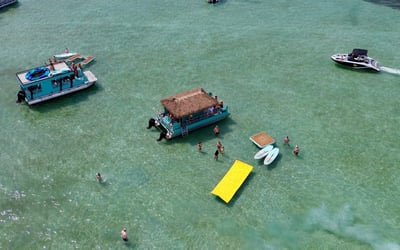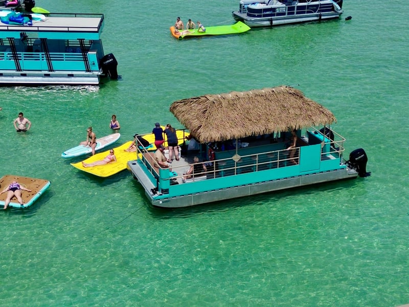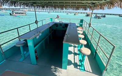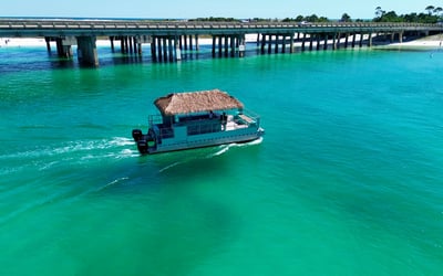 Cruise to Crab Island with a captain and crew on a private 18-passenger tiki pontoon