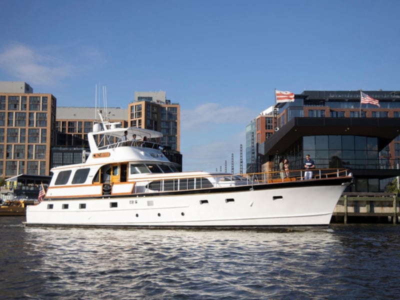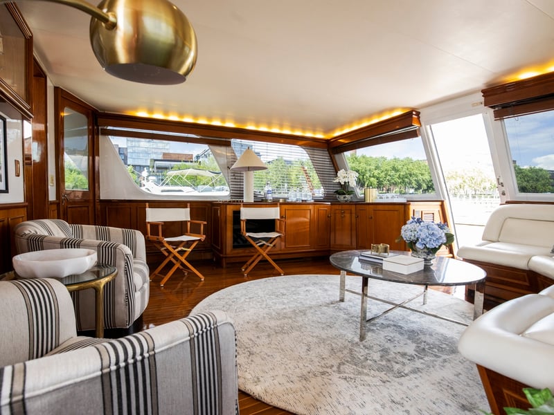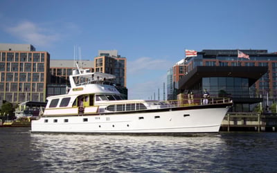 Make a statement aboard Patriot, a 72' 1961 Burger motor yacht, and cruise the Potomac with classic style and DC views. Enjoy two salons, a full galley, A/C, and full-service crew while you celebrate or entertain.