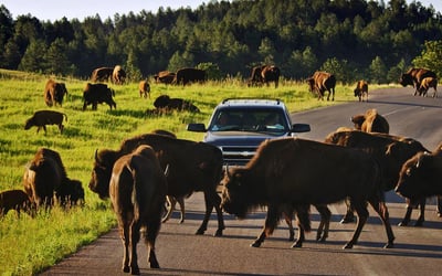 See buffalo up close by open-air jeep and hike scenic Custer trails