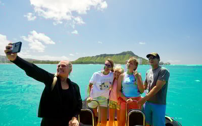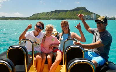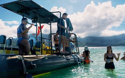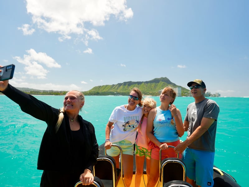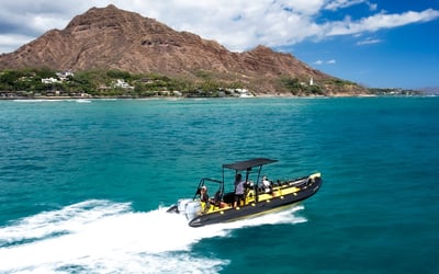 Design your own private cruise along the Waikiki coastline on an adventure raft for up to 6 passengers. Choose activities like snorkeling, wildlife watching, sightseeing, or a high-speed ride tailored to your group.