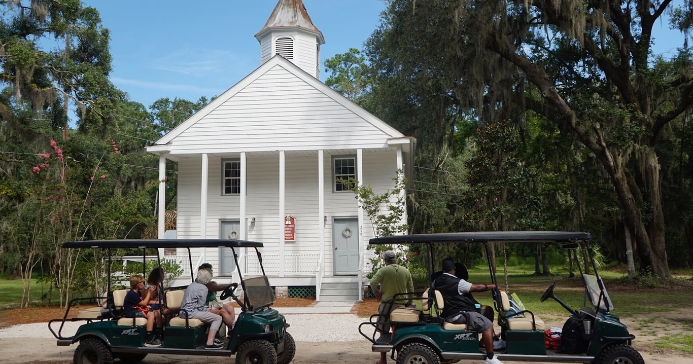 Discover Gullah heritage and meet local artisans on a guided golf cart tour with round-trip boat transport