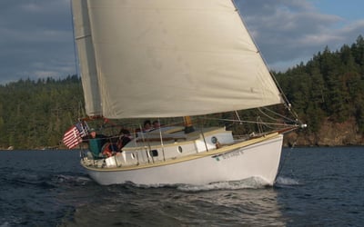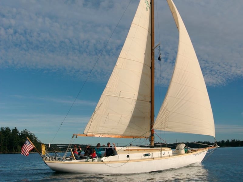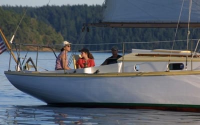 Set sail on the 1948 wooden sloop Aura for a private 3-hour cruise from Orcas Island through calm, protected San Juan waters. Steer and handle lines with non-certified instruction, or relax and enjoy island views and wildlife.