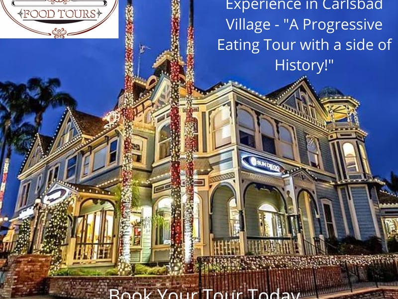 Sample Carlsbad specialties from local eateries, bakeries, restaurants, and culinary landmarks. Menus vary by season, with 2–3 savory tastings, 1–2 wine or beer, and 1–2 desserts.