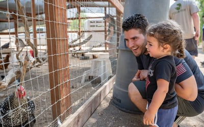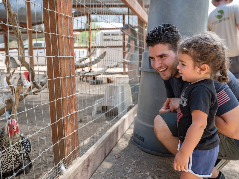 This is an outdoor ~1 hour walking tour on dirt and gravel; wear closed-toe shoes. Strollers, wheelchairs, and walkers cannot enter cow and pig enclosures. Tours may be canceled for heat at 90°+; companion and ADA animals are not allowed on the grounds, and service animals are restricted in some areas.