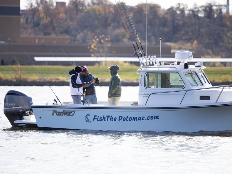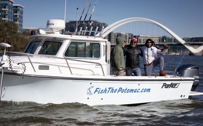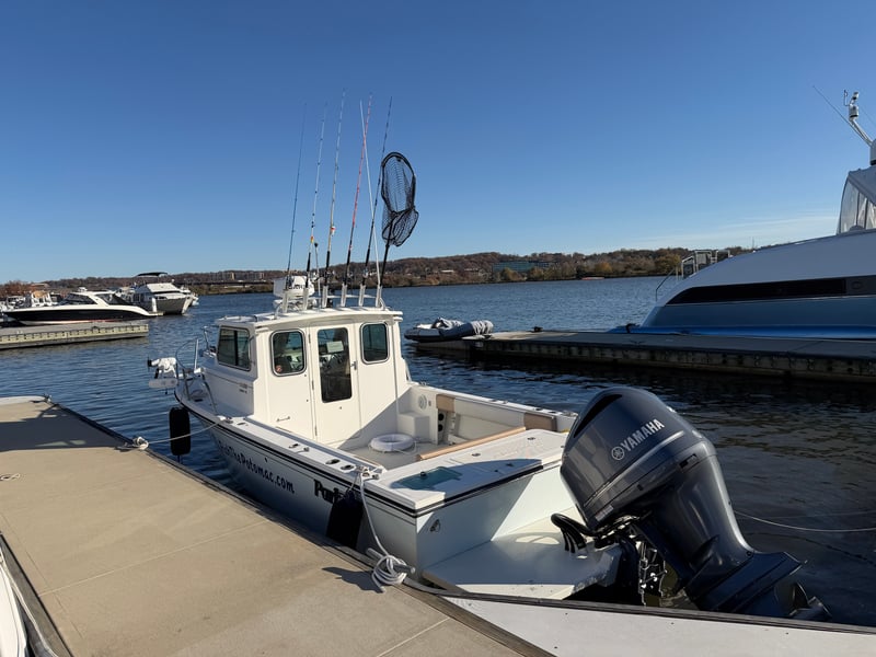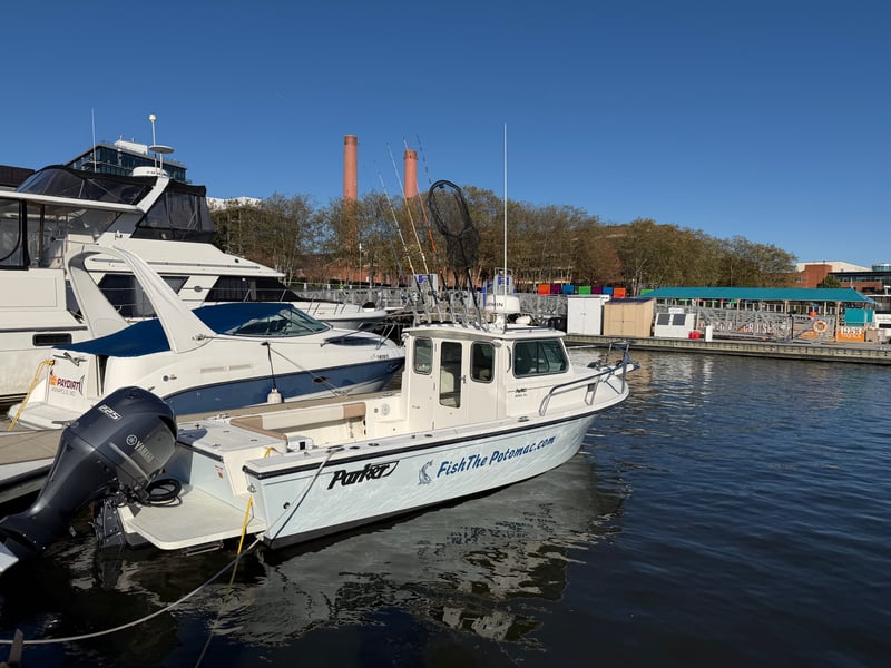 Fish the Potomac on a private charter aboard a Parker 2320 pilot house with a heated cabin and enclosed helm, ideal in any season. Target blue catfish, explore favorite spots, and enjoy a comfortable ride that suits both beginners and seasoned anglers.