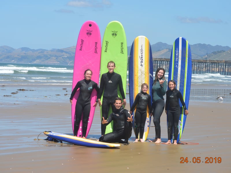 Jonny and his team have created something special here in Pismo Beach. First-timers consistently rave about getting up on their boards during their very first session, which speaks volumes about the instructors' teaching abilities. The vibe is relaxed and encouraging, with coaches like Josh, Tyler, Ryley, Shane, and Molly getting specific praise for being supportive, down-to-earth, and genuinely passionate about surfing. Families love the multi-day packages, and it's common to see groups of varying skill levels all getting personalized attention during the same session. What really stands out beyond the solid instruction is the welcoming atmosphere. Students mention grabbing burgers with instructors after lessons and feeling like part of the crew rather than just customers. The flexibility and kindness shine through too, with multiple reviewers noting helpful accommodations when unexpected situations arose. Whether you're testing the waters with a single morning session or committing to the three-day package, expect to leave exhausted, maybe a bit sore, but completely hooked on the sport.