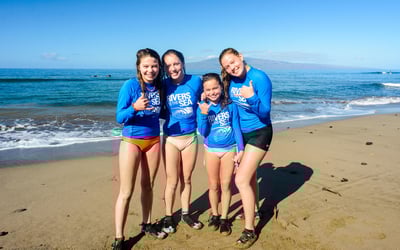 Share the thrill of surfing with a private group lesson in Maui. Learn at a beginner-friendly break with fun, professional Maui-native instructors.