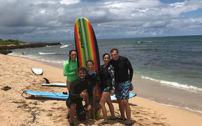 Catch waves on Oahu's famous North Shore with a private group lesson designed for 3 or more. Enjoy a safe, fun session with all gear included and guidance from lifeguard and Red Cross CPR certified instructors.