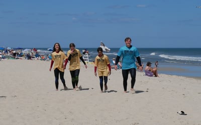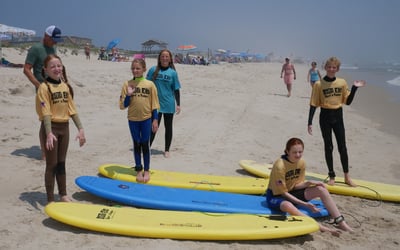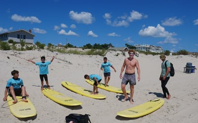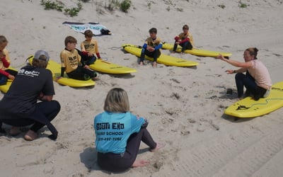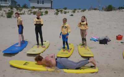 Learn surfing basics together during a 90-minute private group lesson in Beach Haven. Instructors tailor coaching to your group's skill level.