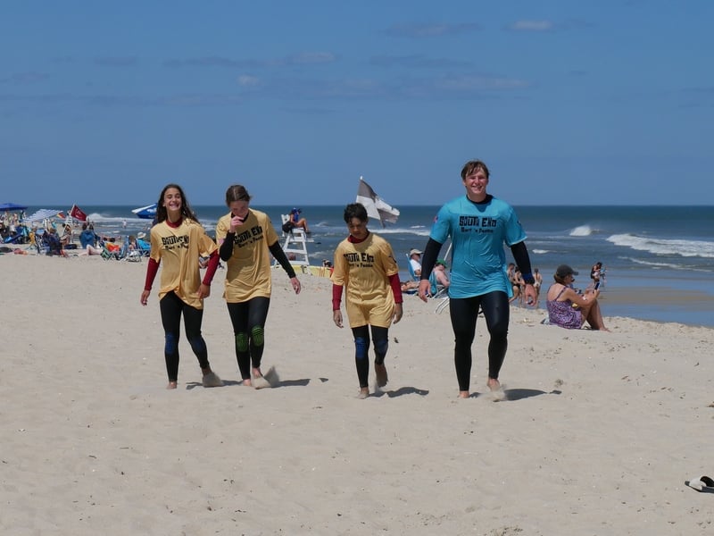 Ocean Street beach, Beach Haven. Arrive 15 minutes early at our shop (220 S Bay Ave, Beach Haven) for wetsuit fitting before the lesson.