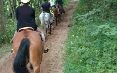 Enjoy a personalized trail ride with only your group and an experienced guide. Choose a gentle walk/trot or a faster walk/trot/canter to match your comfort.