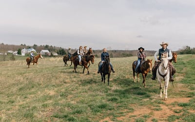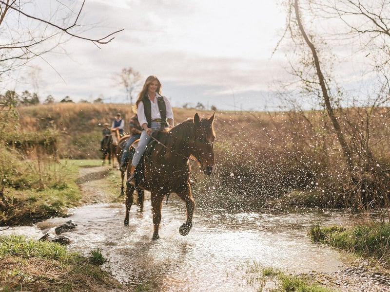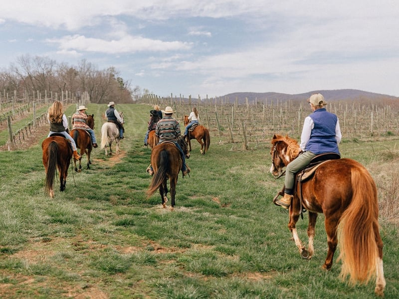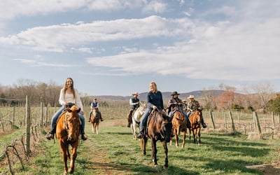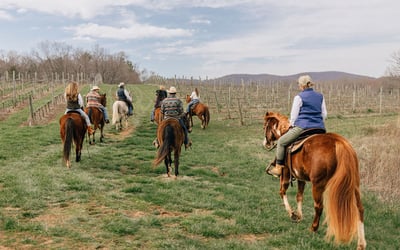 Saddle up for a private, guided horseback ride through the vineyards at Merrie Mill Farm & Vineyard. Take in mountain views and creek crossings before returning near the tasting room.