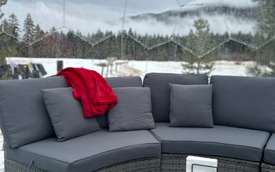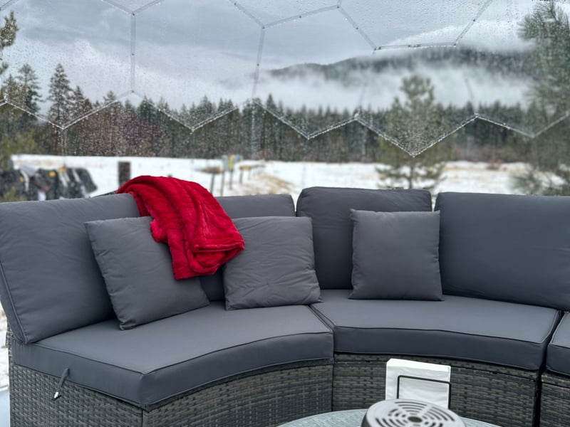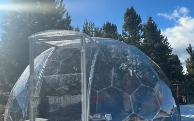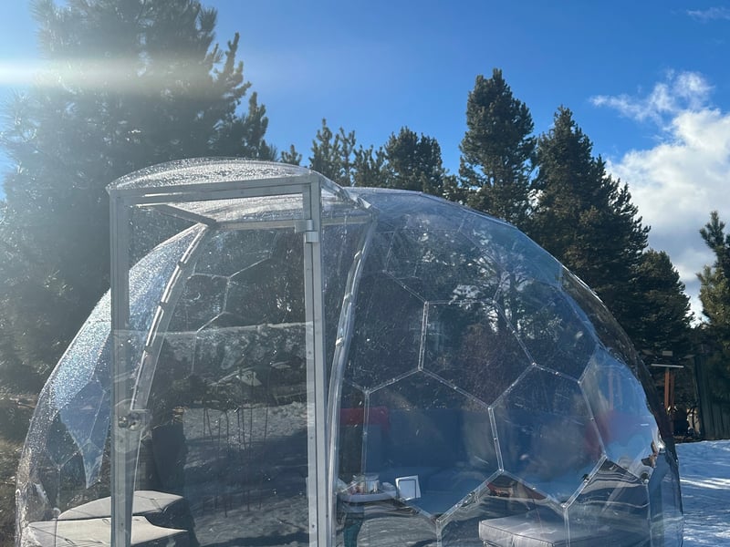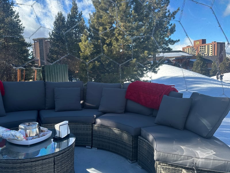 Unwind in a heated private igloo with blankets, speakers, and Tahoe views